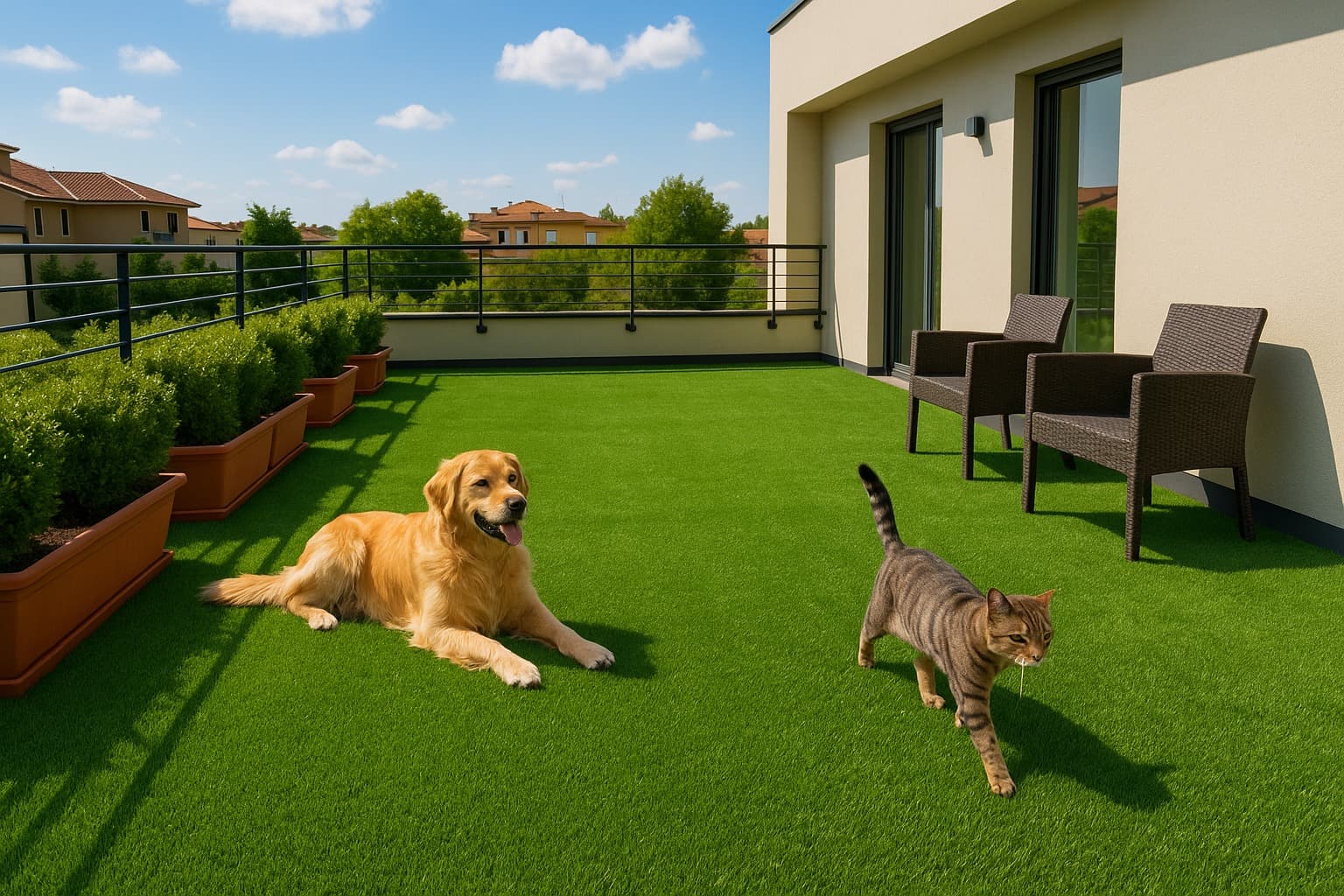Sicura, atossica e certificata, la nostra erba sintetica per terrazze è ideale per famiglie con bambini o animali domestici.
