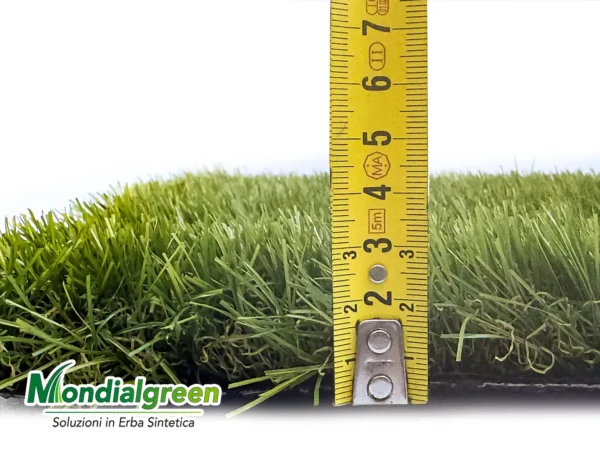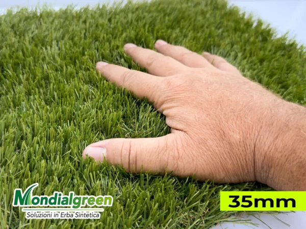 Il Napoli 35 mm è un prato sintetico di alta qualità, progettato per replicare fedelmente l’aspetto e la sensazione dell’erba naturale. Le sue fibre tricolore, con tonalità di verde e marrone, creano un effetto visivo realistico, mentre l’altezza di 35 mm garantisce morbidezza al tatto e comfort al calpestio.